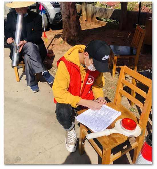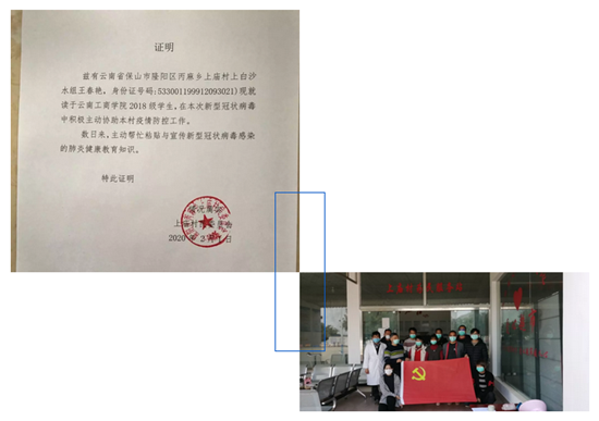 王春艳同学是人文学院学生党支部书记助理,一名入党积极分子,疫情暴发后,瘦弱的她便积极投身到了云南省保山市隆阳区上庙村的疫情防控工作中。