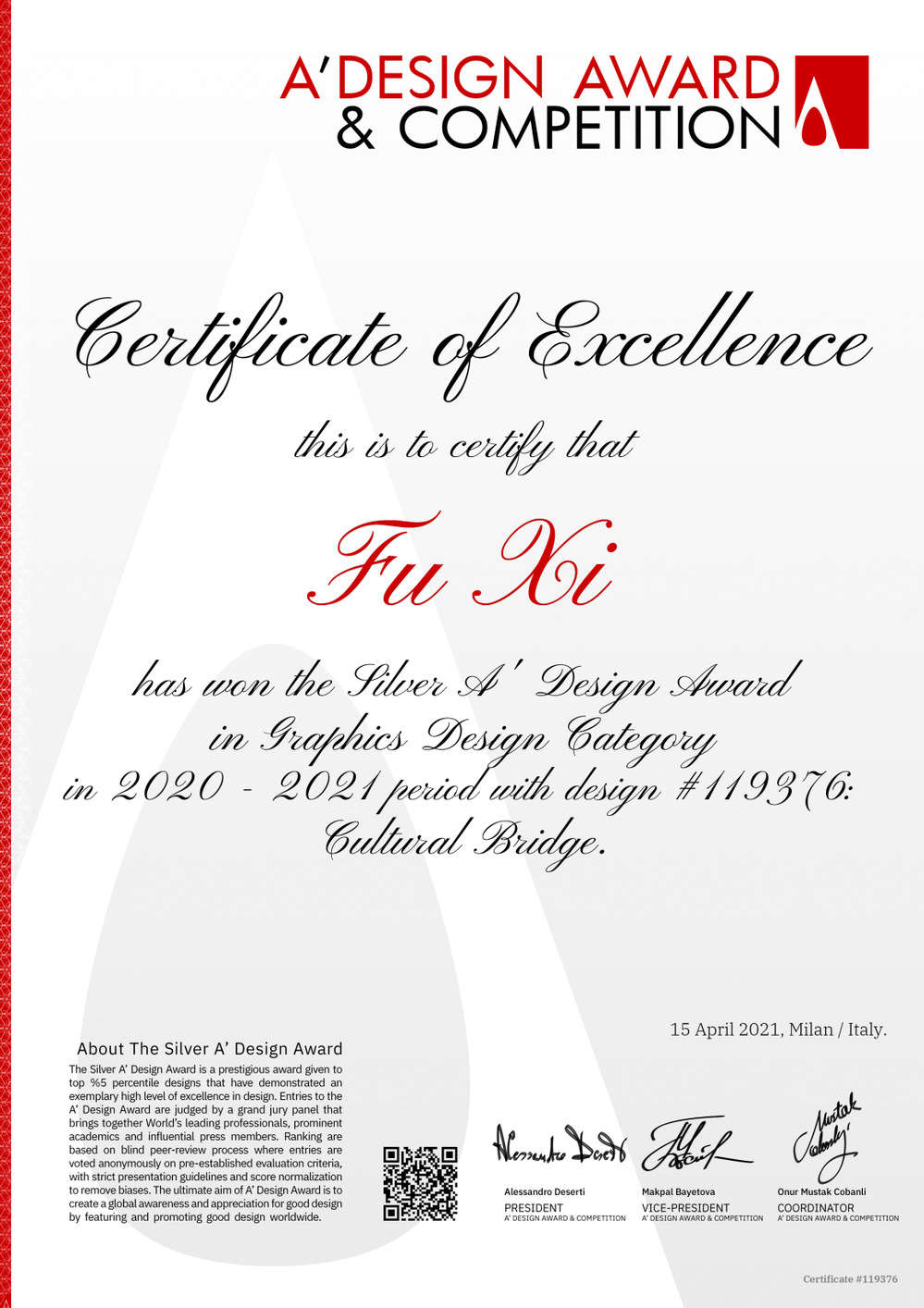 2021年国际A’Design全球设计大赛评选结果已正式揭晓,付曦同学斩获了全球银奖的殊荣。
