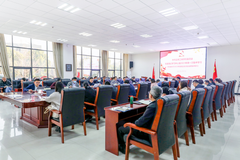 2月7日,校党委理论学习中心组2023年第一次集中学习(扩大)会暨党委班子2022年度民主生活会会前专题学习在行政楼一楼会议室举行。校党政领导班子成员,各职能部门负责人,二级学院院长,各基层党组织书记、副书记、专职组织员参会。会议由校党委书记李国琼主持。