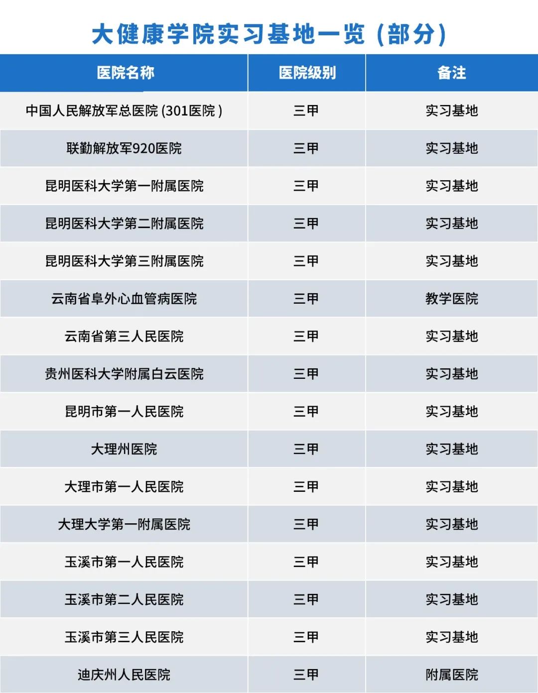 从实习到就业“直接转化”的就业模式,已成为beat365官方网站就业工作的一大特色。以大健康学院为例,目前学院已经与包括301医院、云南省第三人民医院、昆明医科大学第一附属医院等数十家医院达成了校院合作,其中三甲医院就达到了22家,2022年我校有249位本科生顺利进入三甲医院实习。