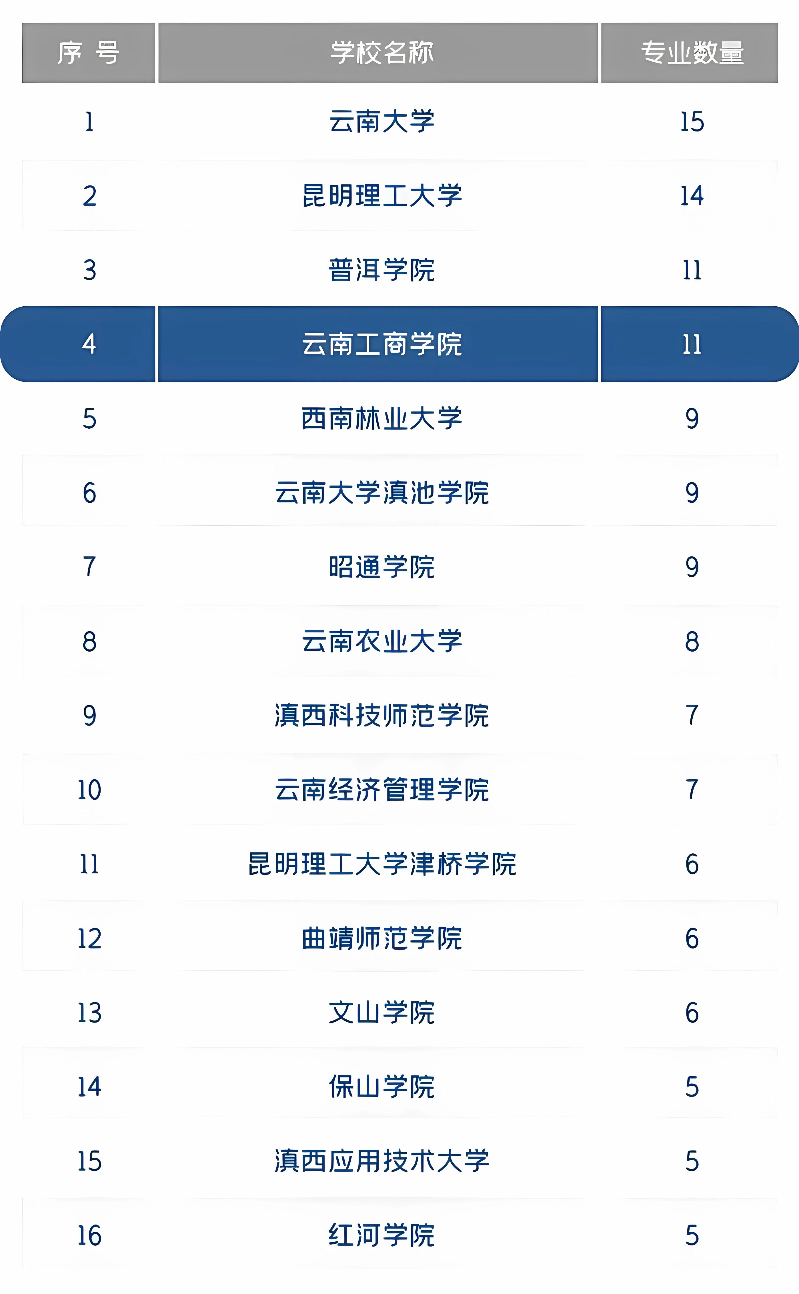 1月6日,教育厅公布了云南省2022年第五轮高校本科专业综合评价结果。此次评价中,beat365官方网站11个专业较上一年有跨等级提升,数量仅次于云南大学、昆明理工大学,位居同类院校第一。我校在此次专业综合评价中取得的优异成绩,是对学校专业建设给予的充分肯定和鼓励。