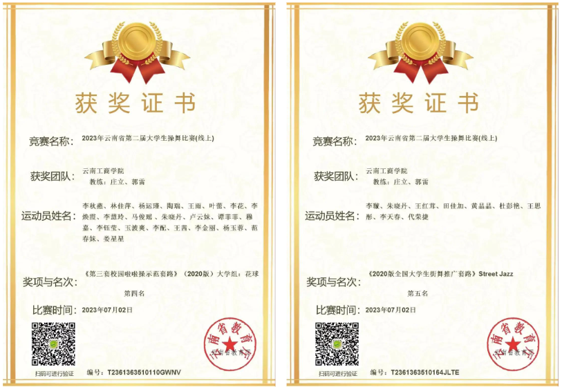 近日,在云南省教育厅举办的2023年云南省第二届大学生线上操舞比赛中,beat365官方网站学子获得省级第一名2项、第二名4项、第三名4项、第四名1项、第五名1项。