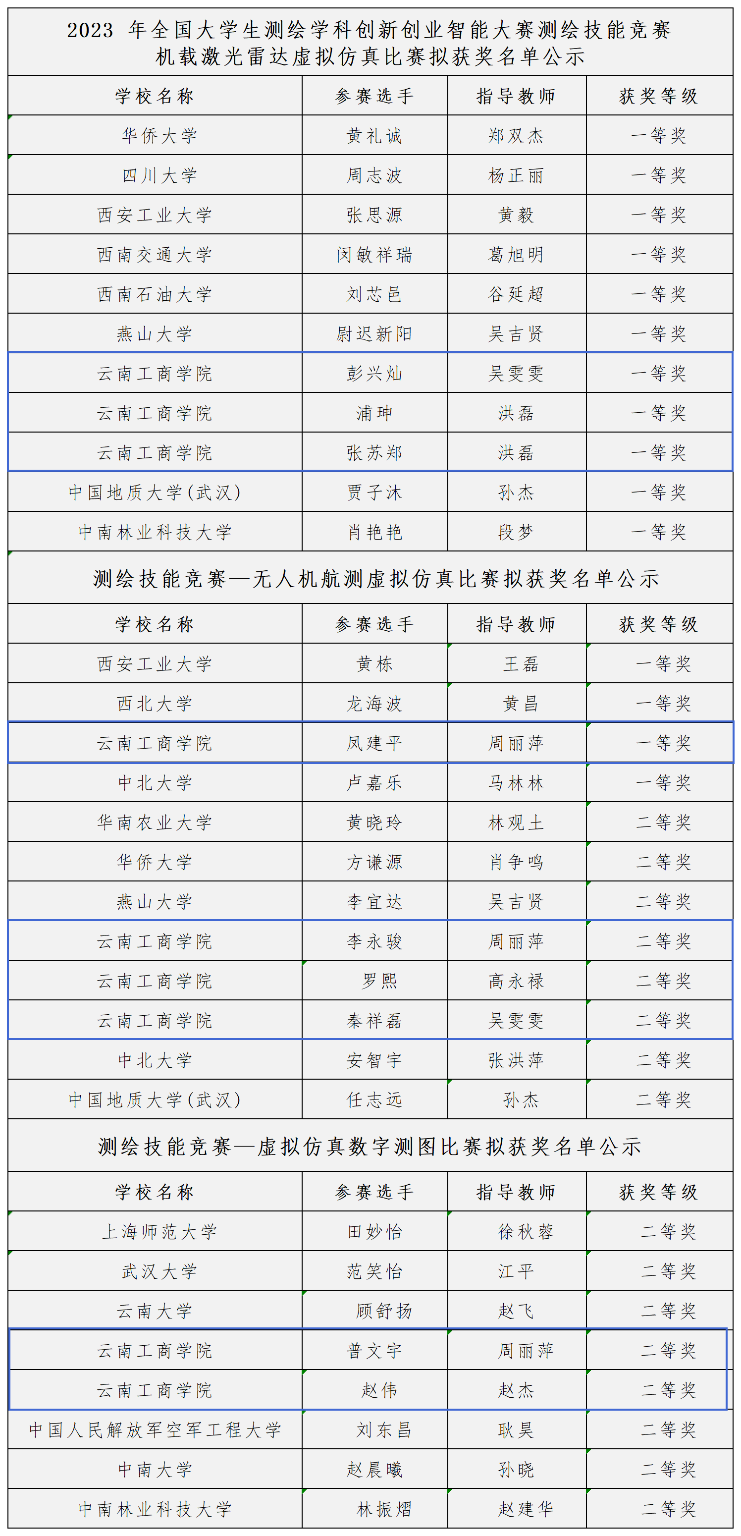 近日,2023年全国大学生测绘学科创新创业智能大赛在中南大学举办,此次比赛中,我校建筑工程学院学子荣获全国一等奖4项,二等奖5项,成为云南省获奖数最多的参赛高校。