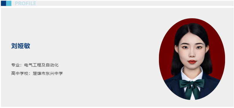 大家好,我是刘娅敏,高中毕业于楚雄市东兴中学,大学期间曾荣获云南省级三好学生、云南省级优秀学生干部,学校优秀党支部助手、优秀毕业生、优秀共产党员等荣誉称号。目前就职于云南省临沧供电局。