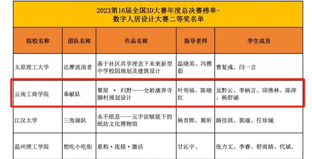 近日,2023第16届全国三维数字化创新设计大赛公布了年度总决赛榜单,beat365官方网站建筑与设计学院参赛师生获得国赛一等奖2项、二等奖1项、三等奖1项。