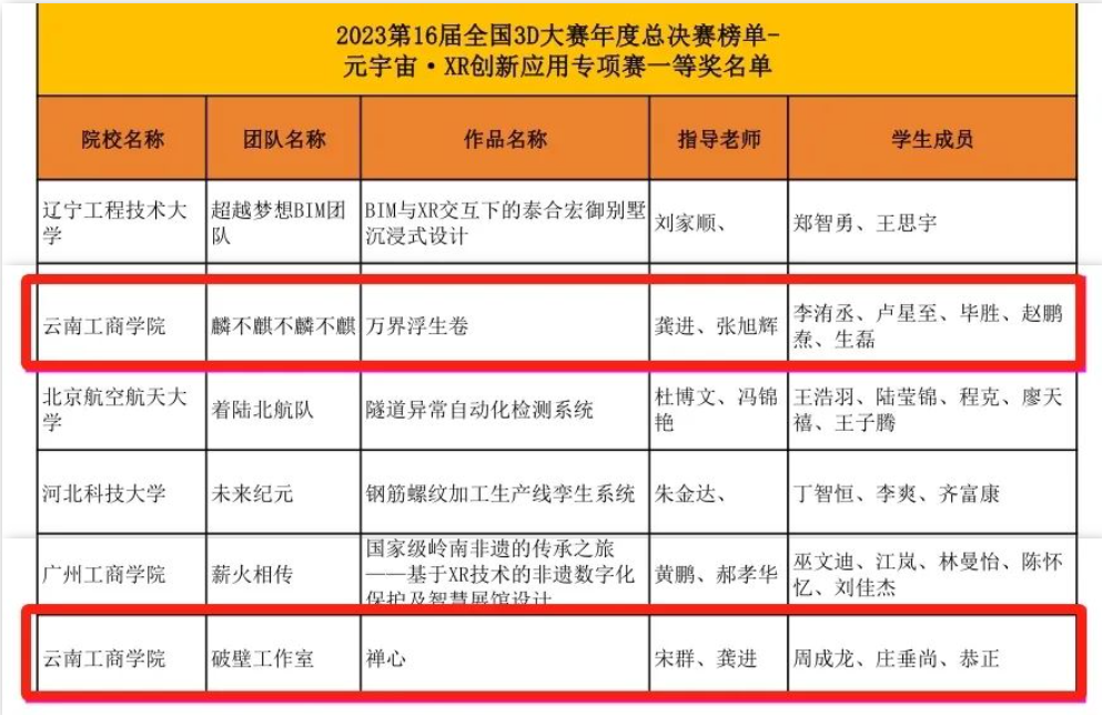 其中,元宇宙·XR创新应用赛道获得国赛一等奖2项、三等奖1项;数字人居开放赛道获得国赛二等奖1项。