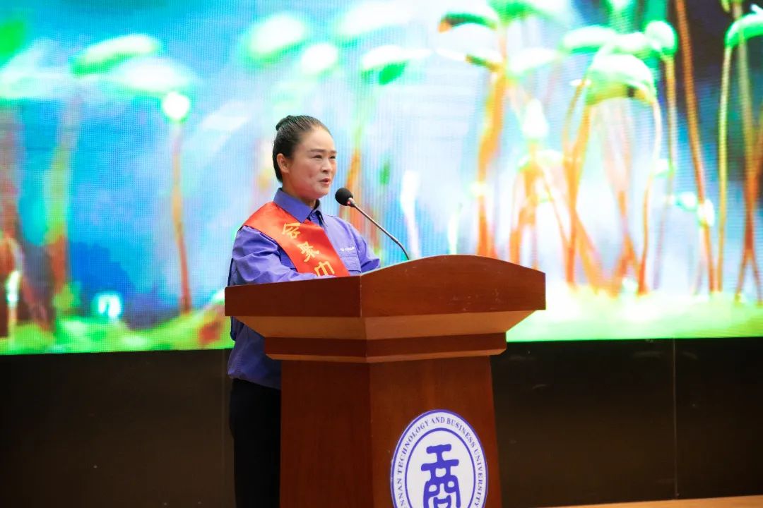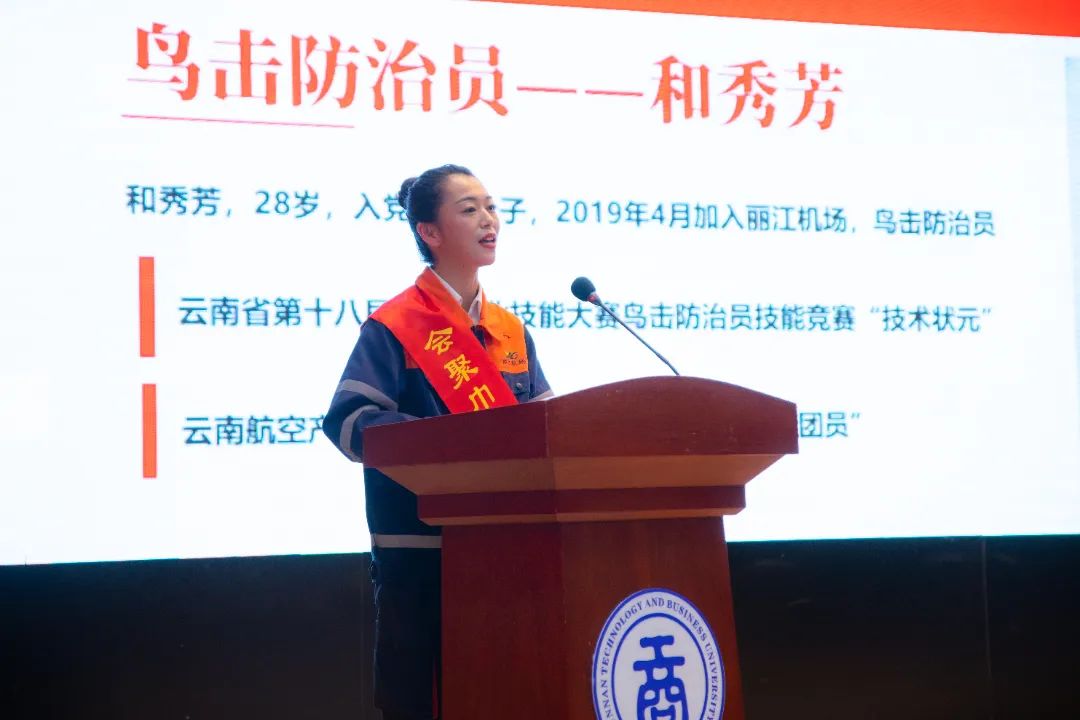 云南航空产业投资有限责任公司丽江机场鸟击防治员和秀芳以《待到山花烂漫时,共看繁花似锦开》为主题宣讲。