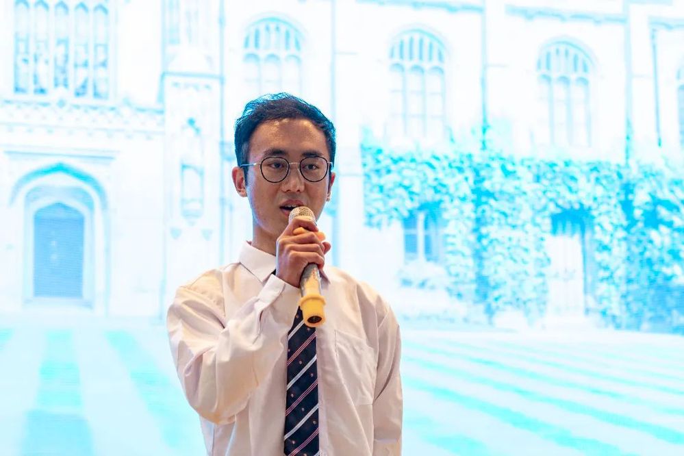 活动伊始,参与香港理工大学研学项目的于雨彤同学和参与剑桥研学项目的黄思韦同学进行了研学分享,表示在研学活动中增长了阅历,提升了认知,开拓了视野,收获了友谊,实现了成长。