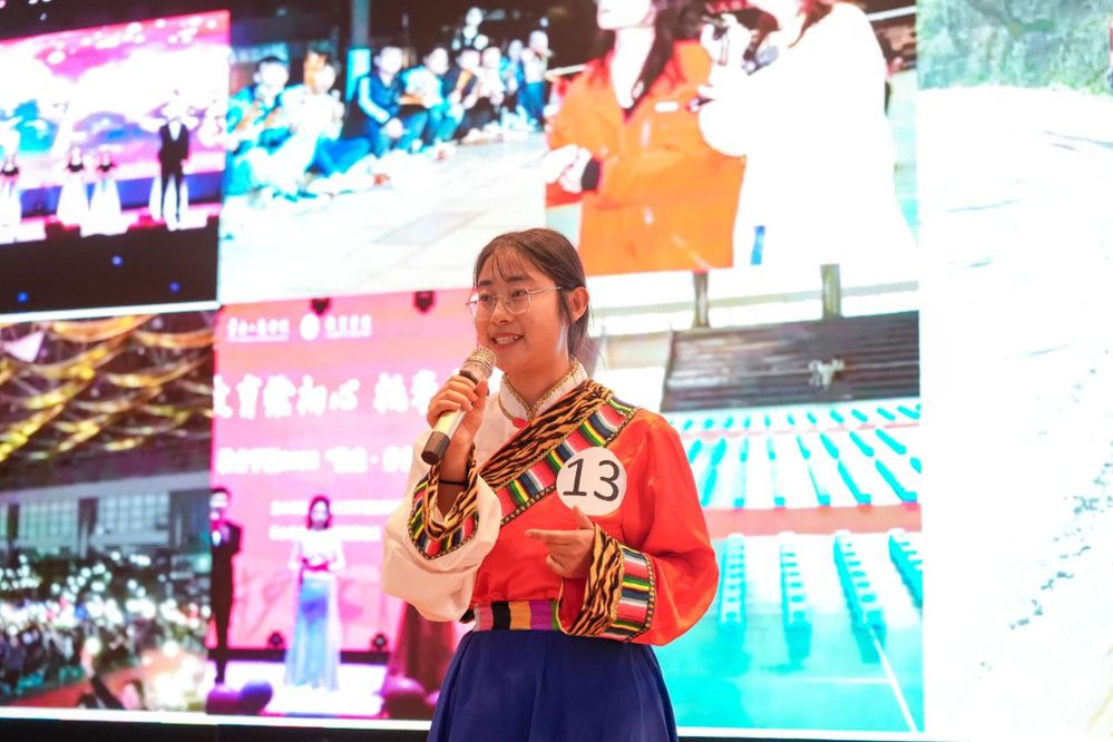 随后,初赛胜出的13位选手依次按照比赛流程开始全英文演讲和相关才艺展示。选手们多才多艺,有吹葫芦丝、唱歌、书法展示,跳民族舞、华尔兹等将才艺展现得淋漓尽致,获得评委和观众的高度肯定,现场氛围热烈而隆重。