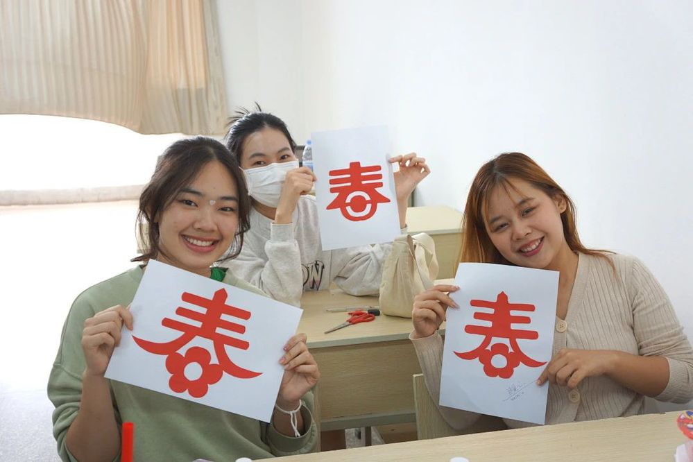 泰国同学们体验了传统剪纸艺术,深刻感受中国民族艺术中热爱生活的情感,同时也能培养他们专心细致的态度,锻炼耐心。
