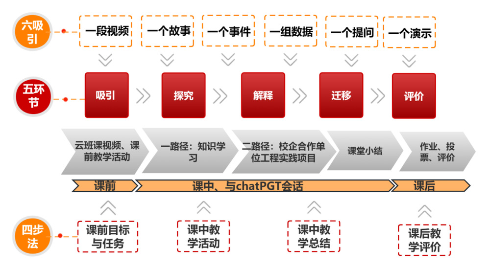 采用“四步骤五环节六吸引”法进行课堂教学内容改革和组织实施。
