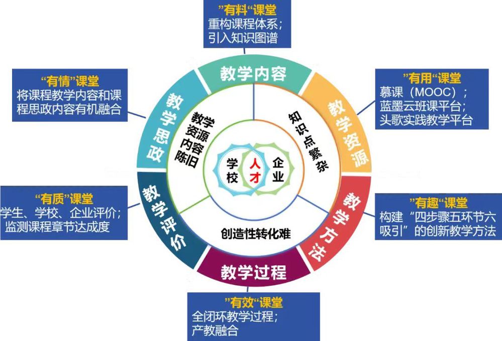 教学团队以应用能力培养为核心,重构课程体系;以多学科知识联动为目的,引入知识图谱。持续引导学生对课程知识点进行个性化学习和拓展。以深化产教融合为方向,丰富教学内容,与企业合作,建设开发各项资源,包括课程内容、企业工程案例数据库,持续迭代优化课件、实训、试题库,为学生提供丰富的学习内容。