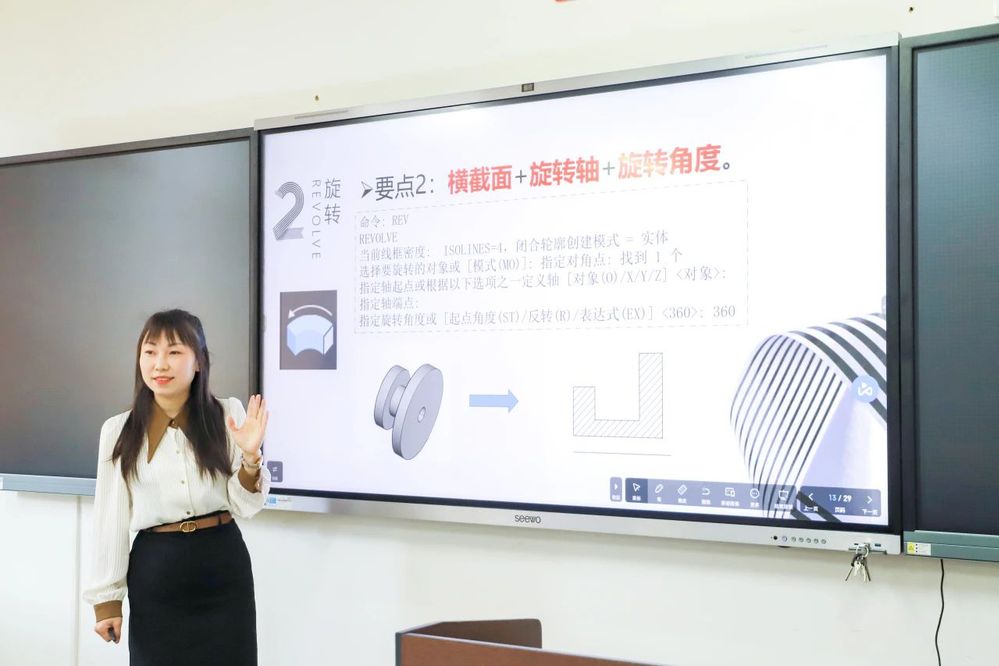 讲解制图时,马佳欢老师先是让学生多维观察实体零件,再通过AR技术把平面物体建模,大家用手机一扫即可观看三维立体图,把抽象的内容具象化。学生不仅感兴趣,而且制图能力也得到了较快提升,技术赋能成为她专业课的创新点。为了让制图更加形象具体,她购买了大量模型应用到教学中,其中包括“长征五号”运载火箭模型。有一次,利用这个模型录完课时已是深夜,她抱着模型刚要出门,不小心“哗啦”一声模型撞碎了一地,她只能一个个捡起零件重新拼接。还有一次,她提前录制视频用于课堂教学,录制了一晚上,在视频生成时电脑突然死机......她又给自己加油鼓劲,从头再来。