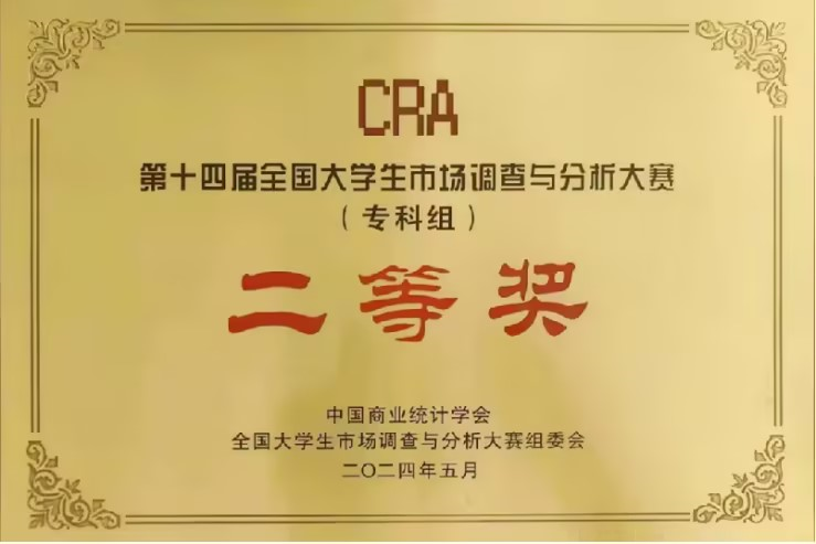 王世杰、张铨、杨文菊、唐文静、赵念雪团队运用创新性的数据分析工具和实践调查方案,凭借卓越的创新思维和实践能力,在激烈的竞争中,脱颖而出,荣获国赛二等奖。