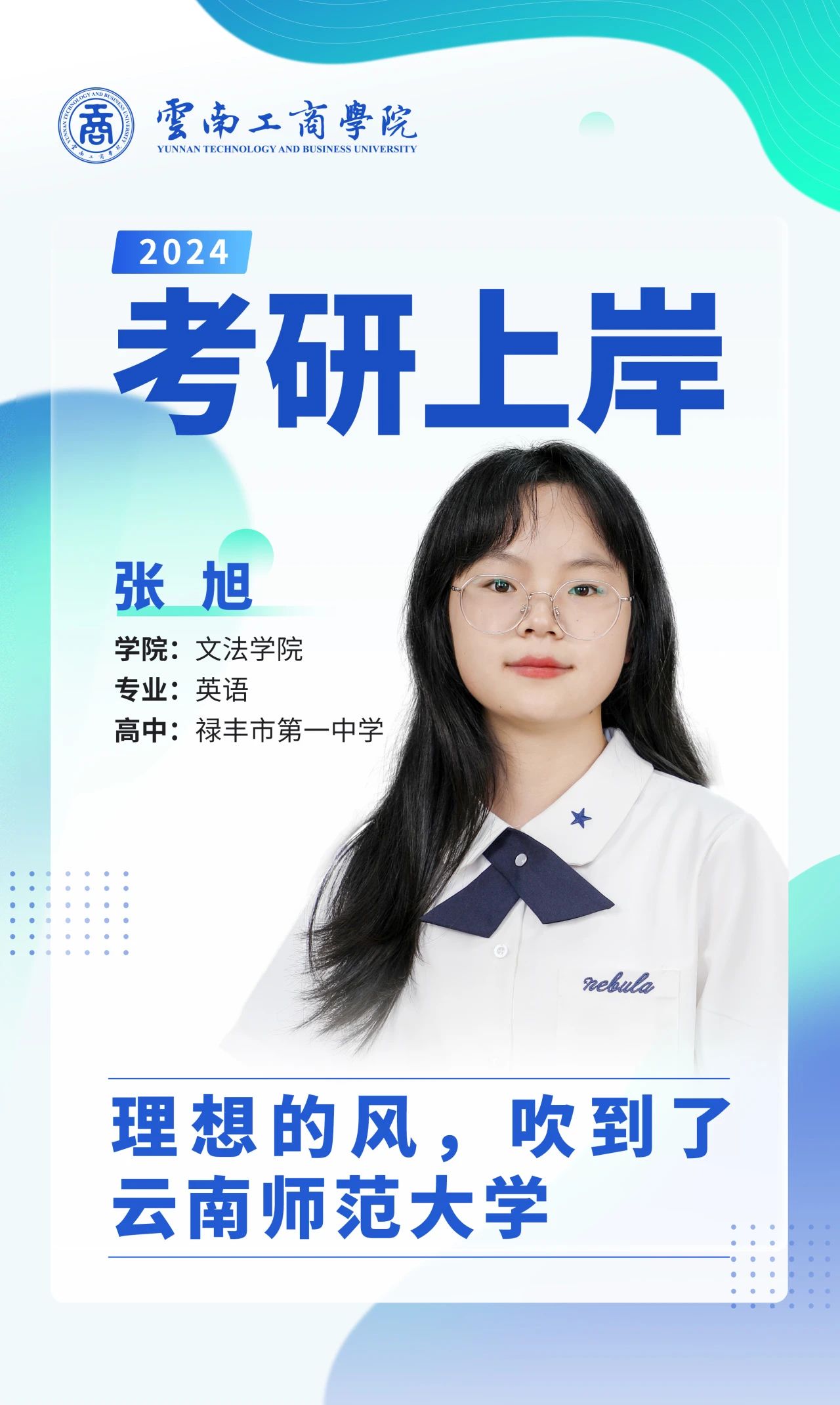 曾经,你彻夜未眠,埋头如山的试卷:昨天,你得偿所愿,金榜题名;今日,你要踏上征程,沐浴硕士生活的蓝天;未来,人生路上将充溢激情喜悦,高校的生活会将更加光辉灿。来自2020级【本科】英语3班的张旭同学考研成功上岸云南师范大学,她以“如果没有躺赢的命,那就站起来奔跑,熬得住就出众,熬不住就出局。”为人生格言,走出了一条属于自己的成功之路。