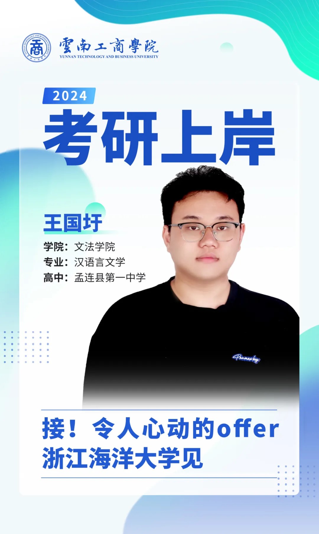 大家好,我是王国圩。高中毕业于孟连县第一中学,今年考研顺利上岸浙江海洋大学。