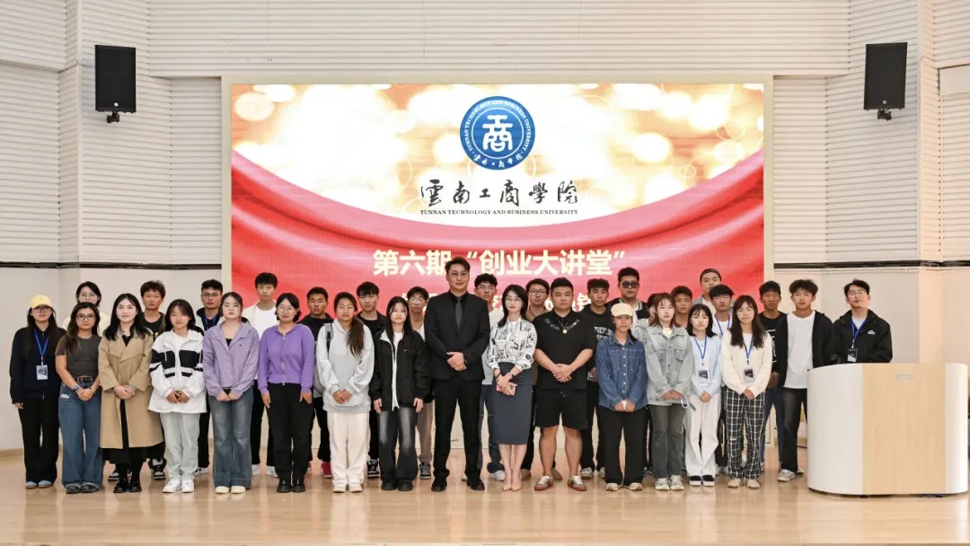 本次讲座邀请了学校优秀校友张员铭,以“校园到田野,再到世界——云工商学子跨境电商助力乡村振兴”为主题,以自主创业为背景,向200余名在校生讲述了从大学时期至今的创业之路,向学弟学妹们分享了接地气且实用的创业经验。
