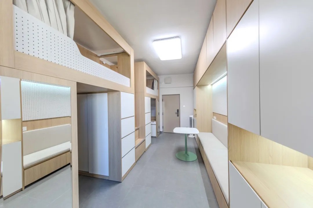 为进一步优化学生的生活环境,为考研学子营造相对独立、静谧的学习与休息空间,学校专门设立考研公寓。公寓房型均为全屋智能2人间,楼栋独立,男女宿舍分区管理,公共区域设置人脸识别门禁,宿舍内配备了全屋智能家电,宽敞充足的居住空间、优美温馨的住宿环境,为紧张备考的学子们提供了极大的便利。