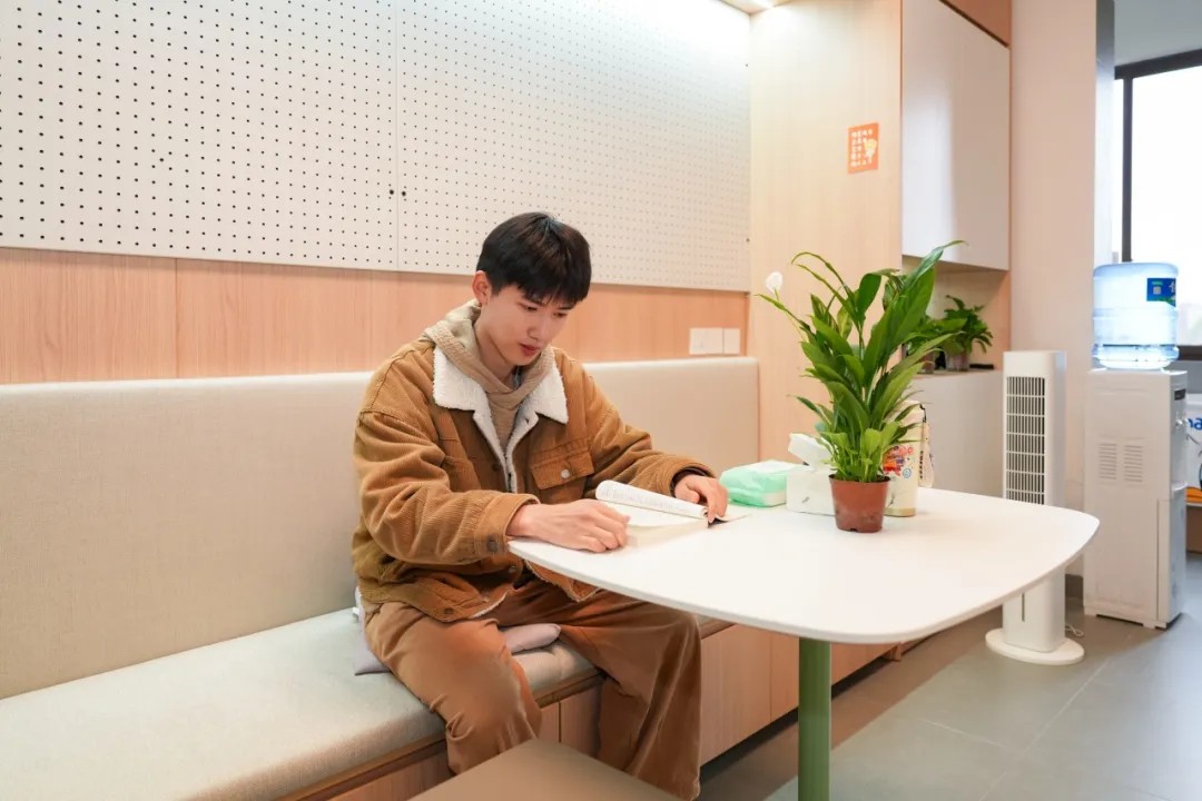 此外,自习室内专门设置了静音背书亭与小组研讨室,充分满足学生多样化的备考需求。在这里,学生们既能享受安静的个人学习环境,又能在小组研讨中相互启发,让思维的火花尽情碰撞,真正实现心无旁骛地备考。