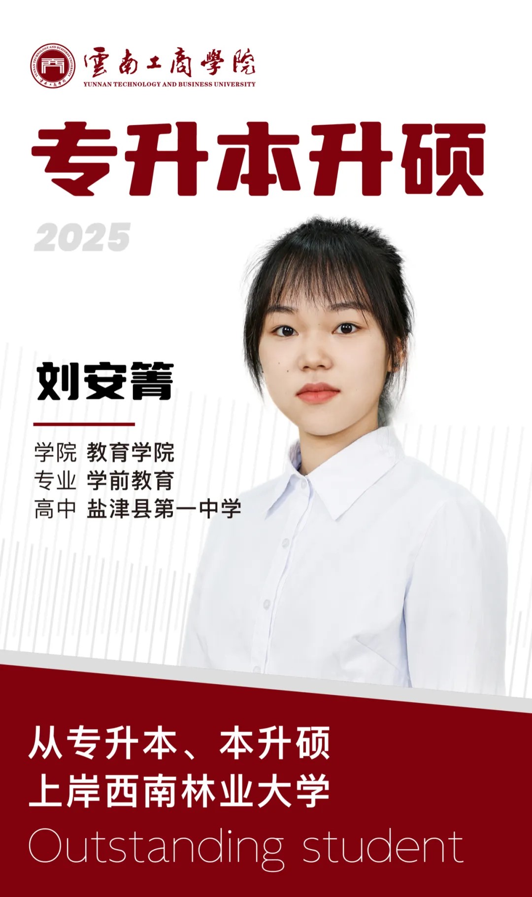 路虽远,行则将至,事虽难,做则可成。心中有丘壑的人始终都能够发挥自己的优势,走向更好的未来。来自教育学院2022级【专升本】学前教育5班的刘安箐同学顺利考取西南林业大学的研究生,让我们一起来听听她的升学故事。