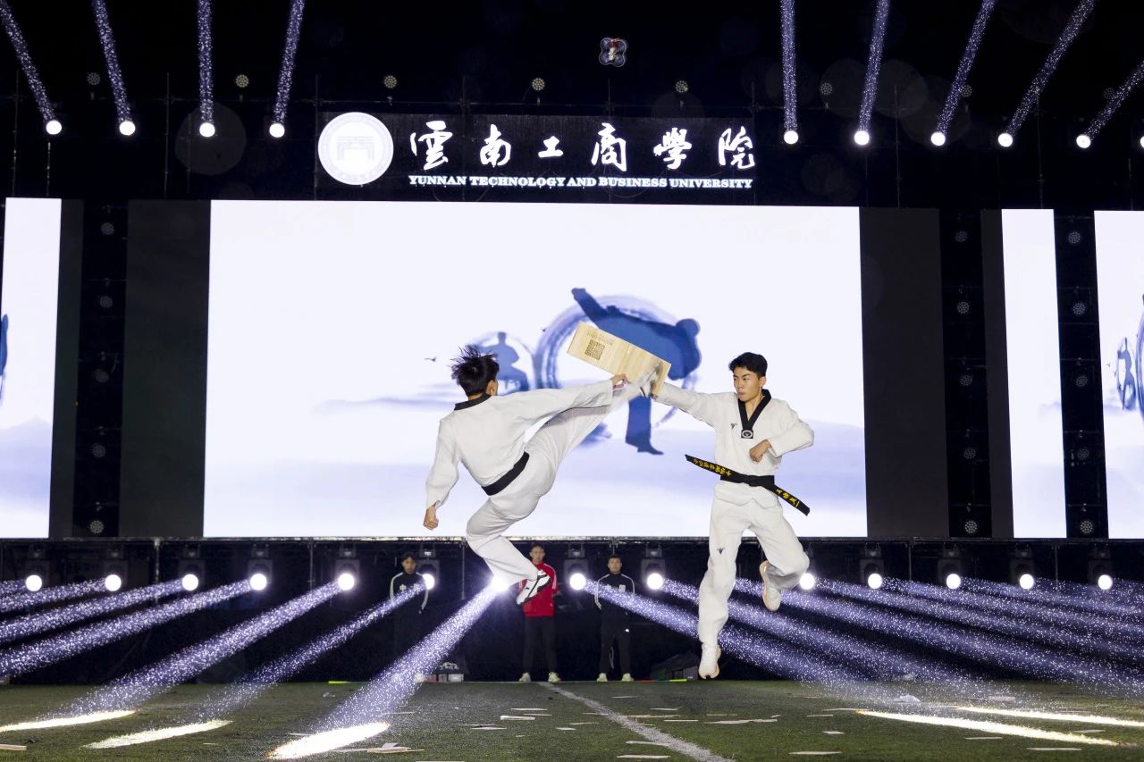 这场属于青春与拼搏的盛会正式开启,刹那间,寓意吉祥与腾飞的“龙凤呈祥”飞天表演直冲云霄,震撼寰宇的烟花秀,点燃了整个初夏的夜空!