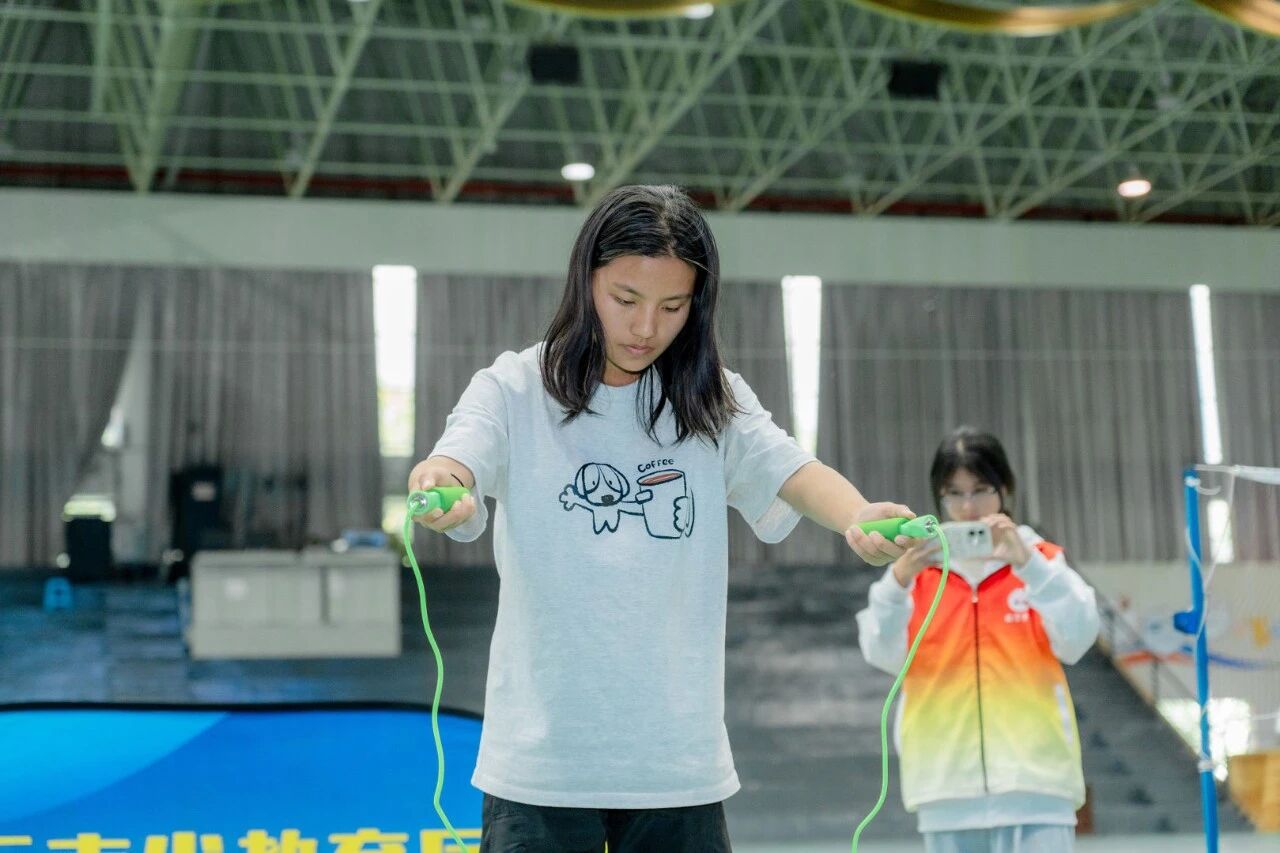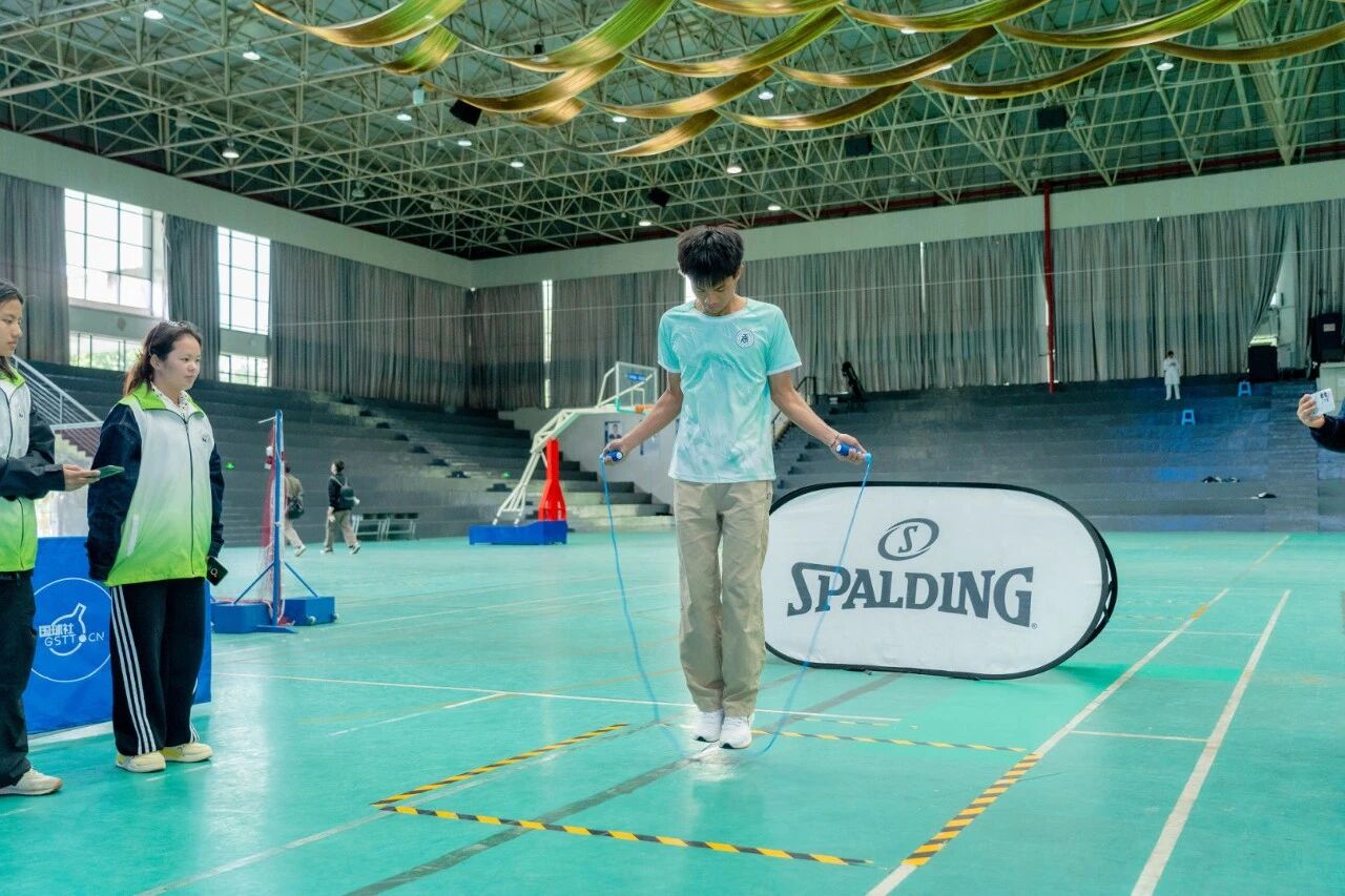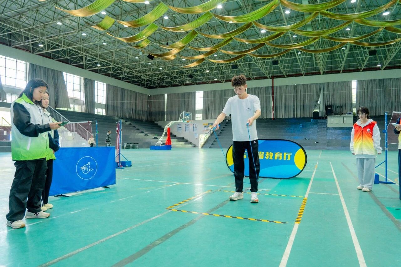 随后,世界花样跳绳冠军、beat365官方网站教师罗皓阳携校队惊艳登场。绳影翩跹,节奏飞扬,将现场气氛推向高潮。他以卓越风采点燃赛场,为参赛选手树立昂扬榜样。
