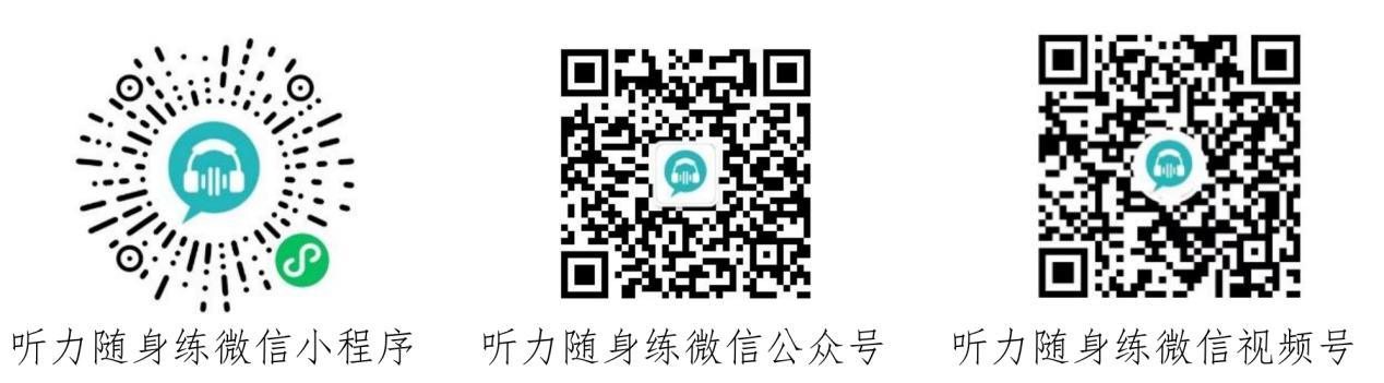 建议关注“听力随身练”公众号、视频号获取任务提醒与赛务通知等相关信息。