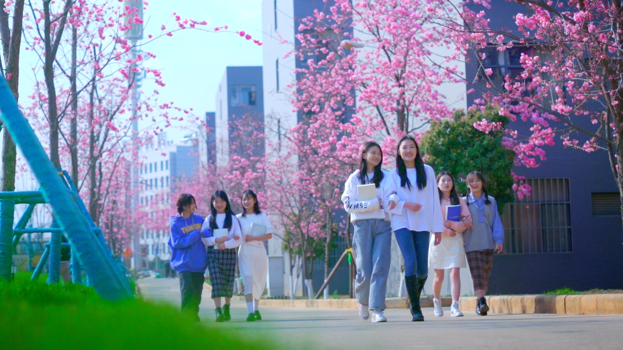 樱花绽放的云工商校园