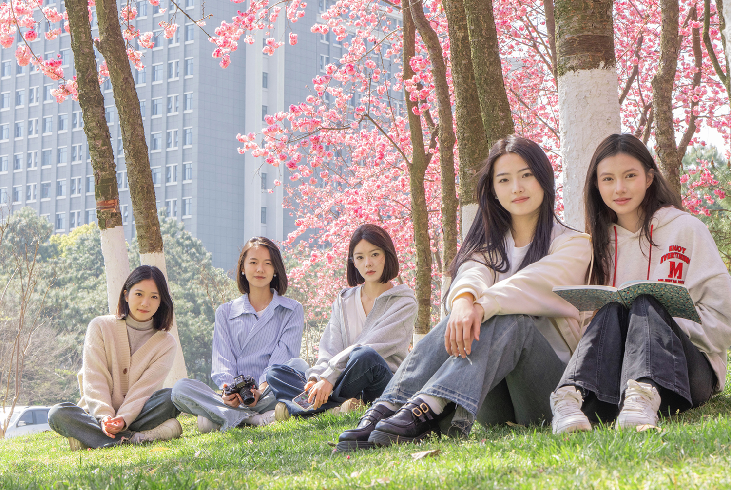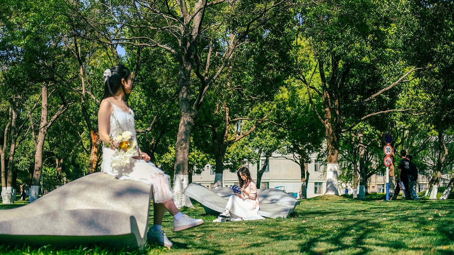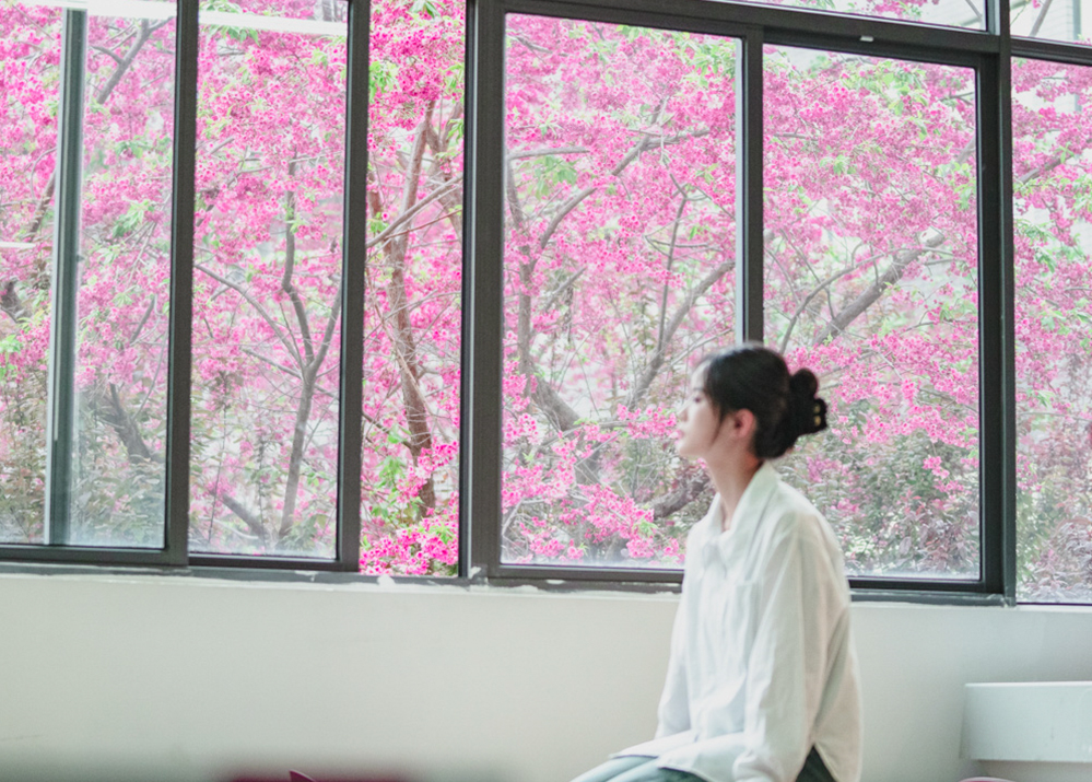 校园樱花树下小憩